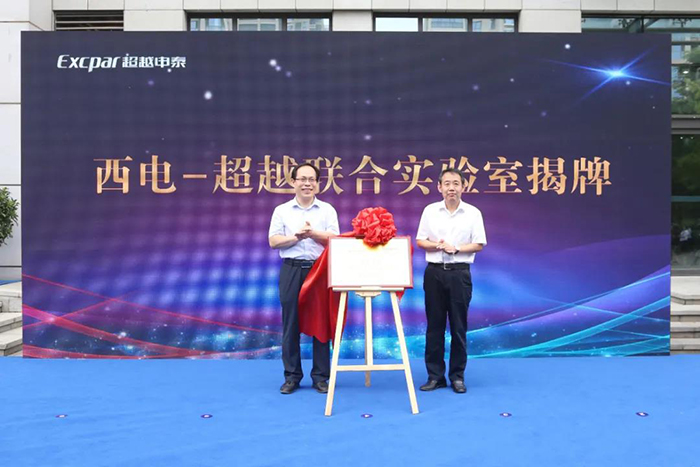 超越常務(wù)副總于治樓聯(lián)合西電大學(xué)校長助理張進成共同為西電-超越聯(lián)合實驗室揭牌